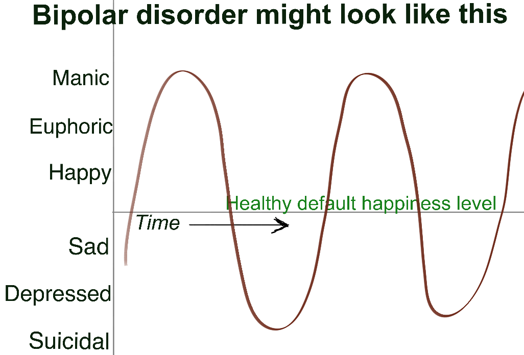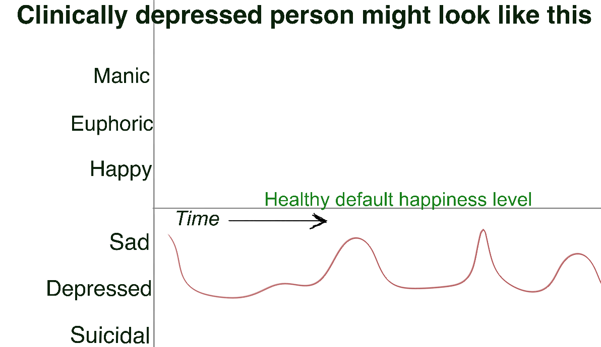 Below are some examples of how a healthy default happiness level might look relative to various ‘actual’ happiness levels — which naturally oscillate over time in everyone: